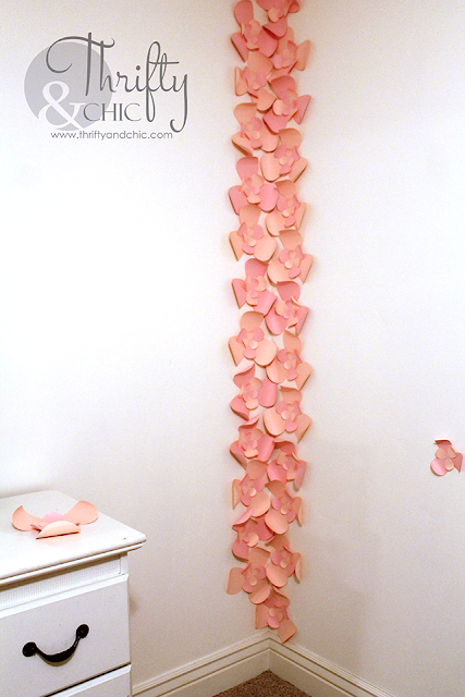 The first step was to cut all the flowers in three different sizes. I used my Silhouette to cut these. I think I cut about 70-80 flowers in each size. Took a little time :)